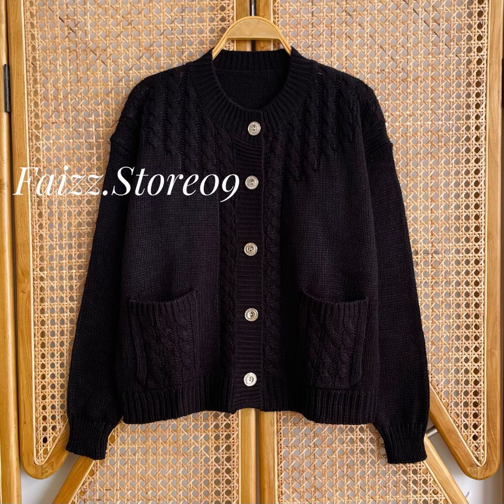 Teresia Cardy Knitwear - Outer Atasan Cardigan Rajut Kancing Saku Wanita Motif Cable Korean Style Premium