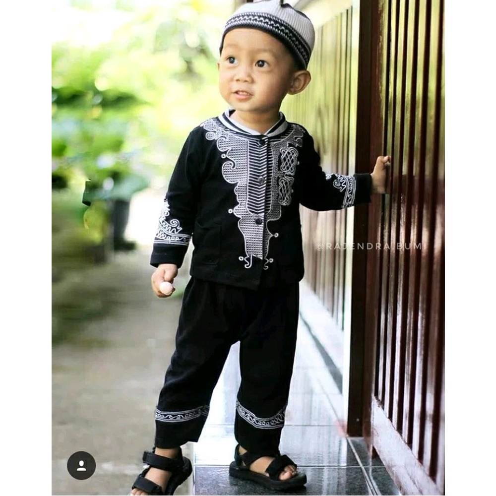Baju Koko Anak Laki-Laki Setelan Lengan Panjang Set Peci JOJO Bahan Kaos Nyaman Adem Lebaran