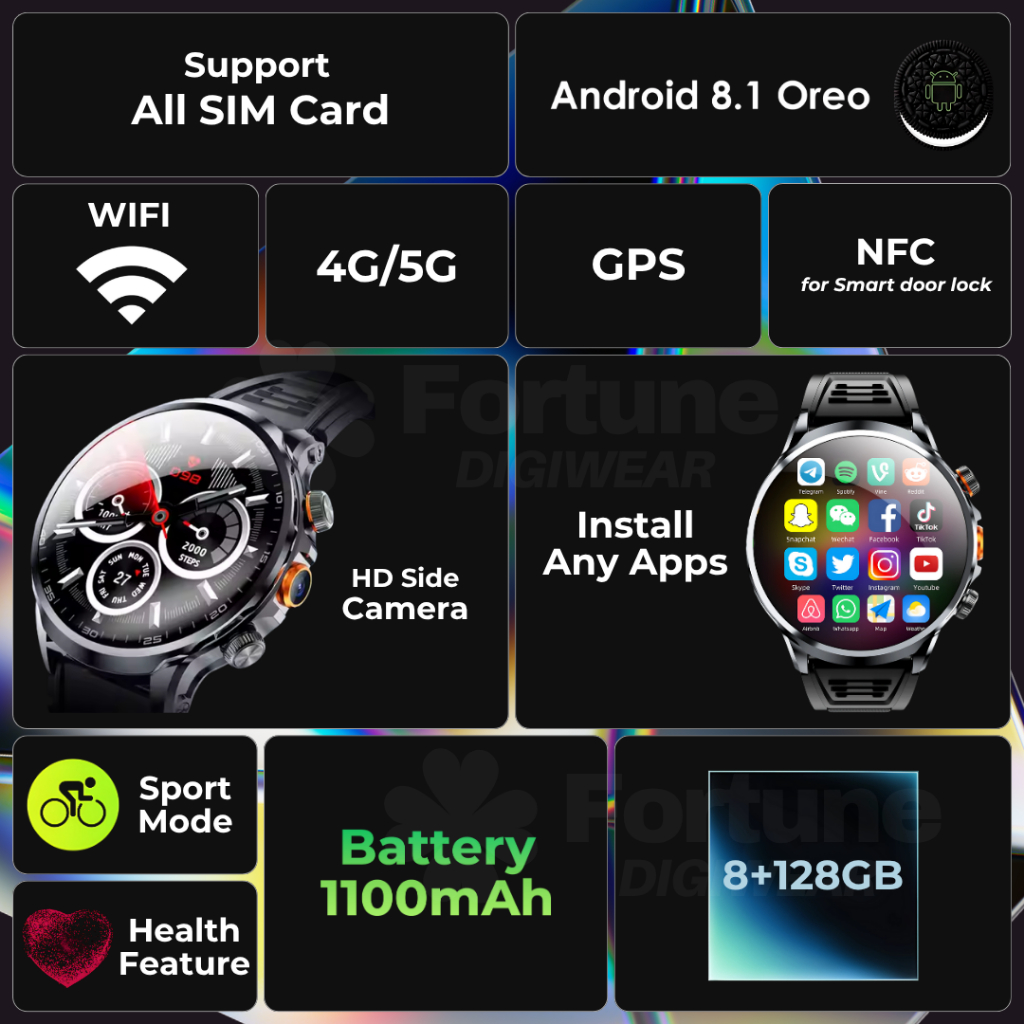 FORTUNE DIGIWEAR - H18 PRO Smart Watch Android Jam Tangan SIM Card 4G/5G | Camera | AMOLED | Wifi | GPS | NFC | Bluetooth