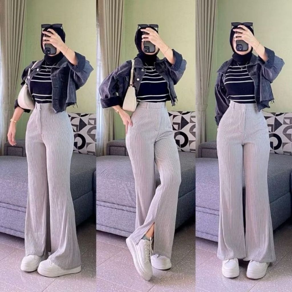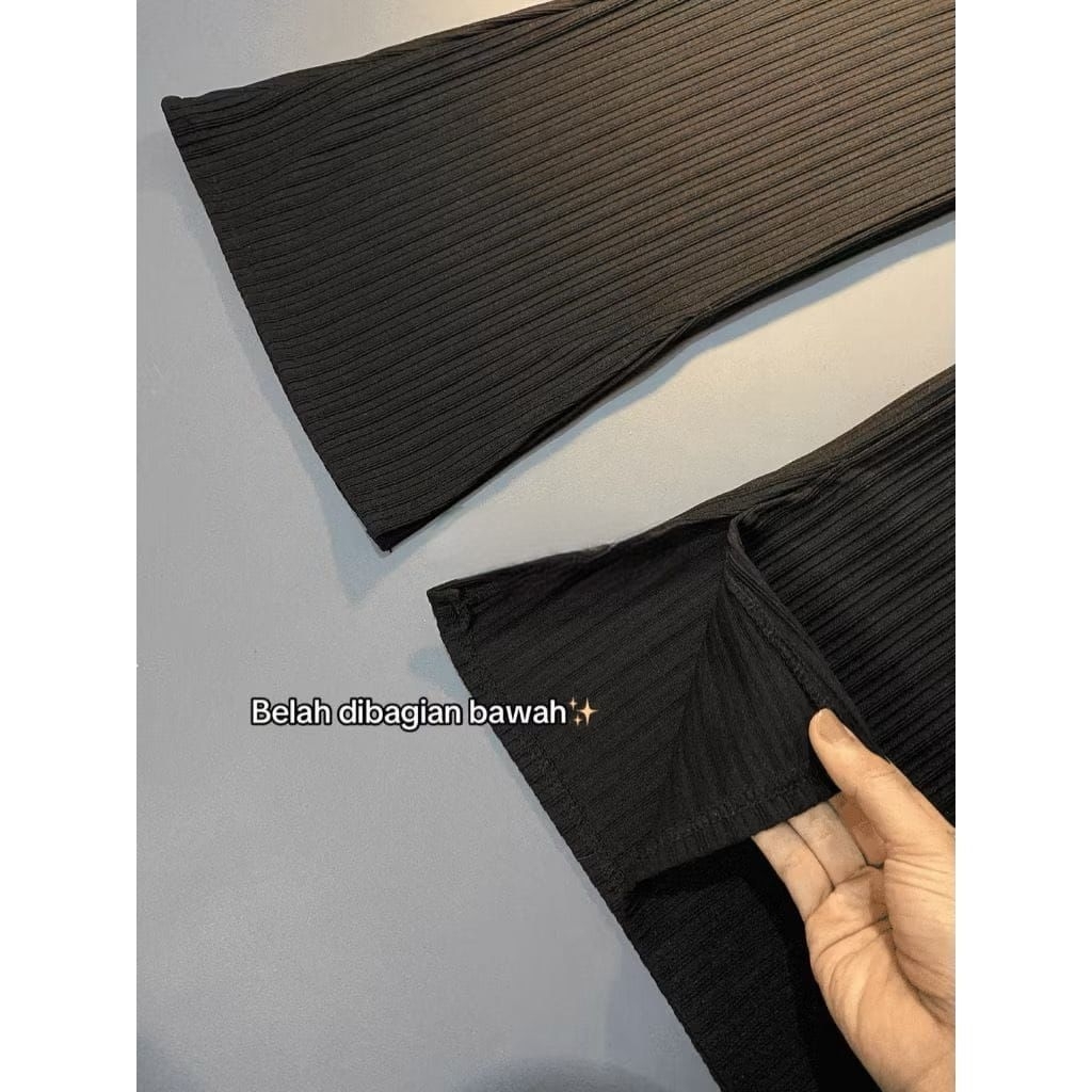Cutbray Knit Yulian Celana Wanita Highwaist Premium Kekinian