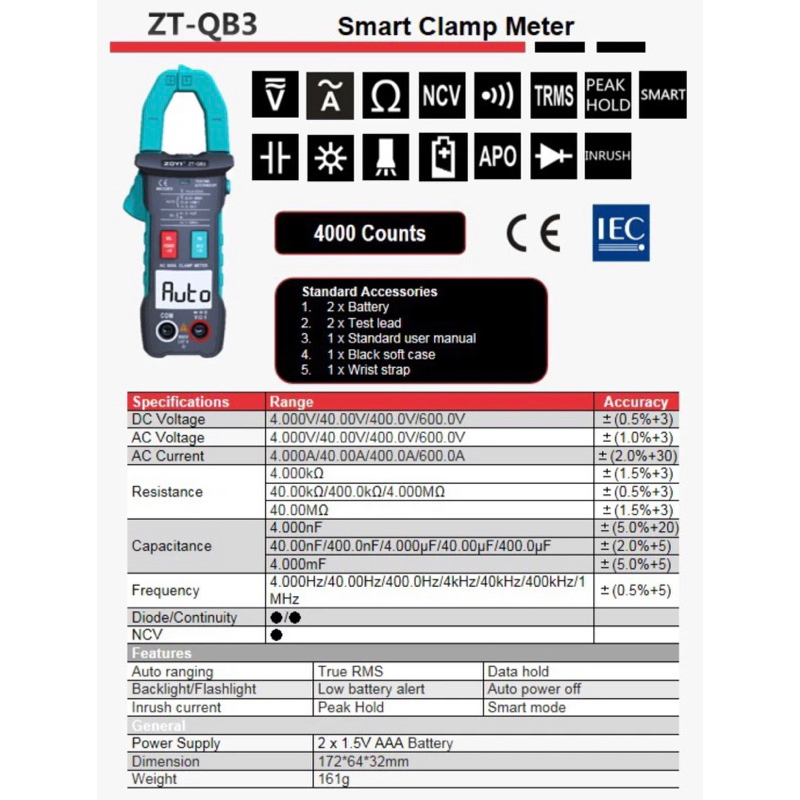 ZOTEK ZT-QB3 ZTQB3 Clamp Meter Multimeter Tang Ampere Multitester AC DC 600A - SKU 2.002.0708