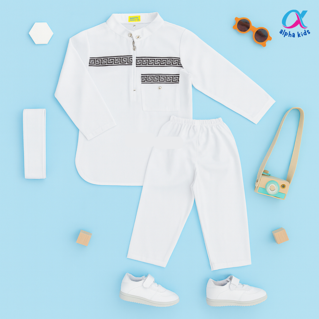 Baju Koko Manasik Haji Anak Laki Laki Usia 1-10 Tahun Setelan Baju Koko Pakistan Putih