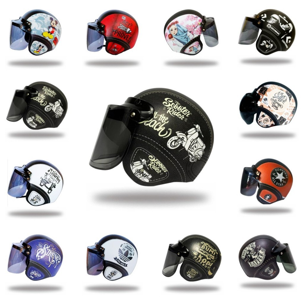 Helm Bogo Dewasa Retro Kulit Sni Dewasa Full Motif Murah Free Packing Box