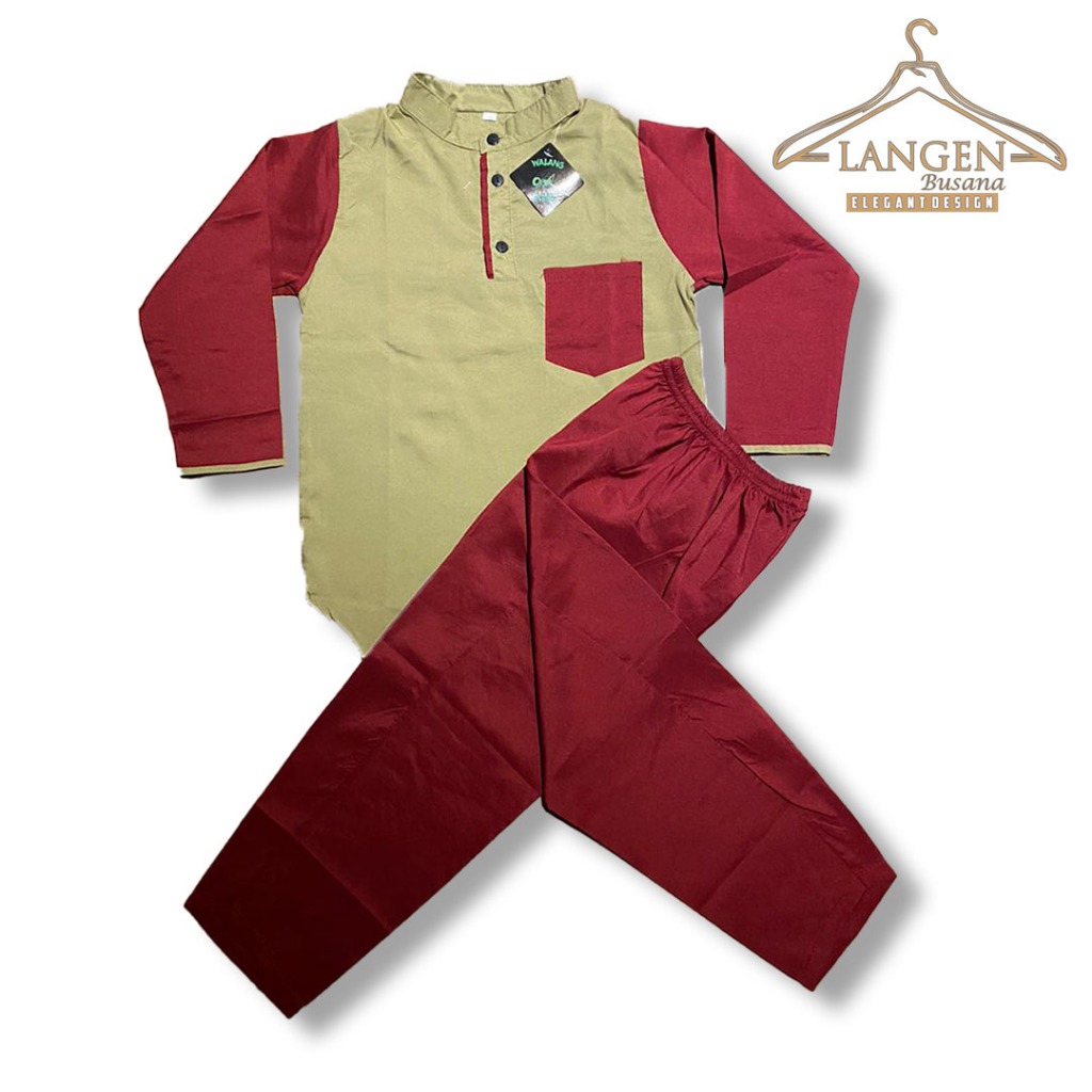Setelan Baju Koko anak Laki laki Warna Biru Denim Kombinasi Warna Biru Navy