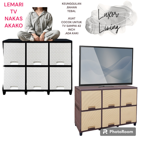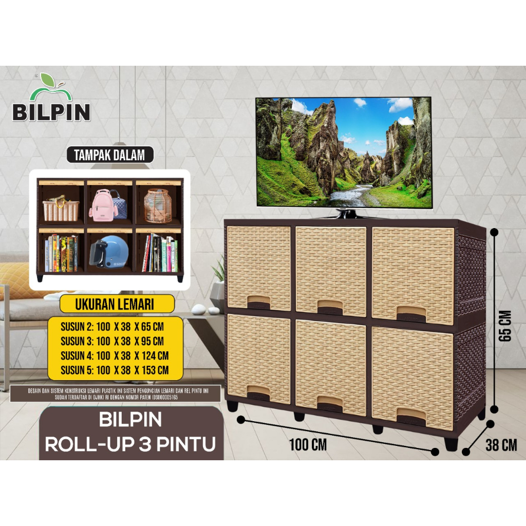 Lemari Plastik Akako Bilpin Rollup Pintu Sliding 6 Pintu Susun 2 Rak Tv Akako