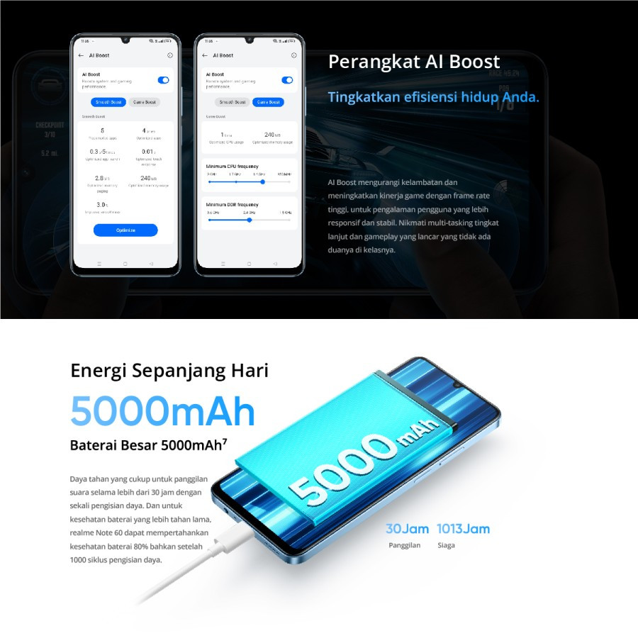 Realme Note 60x 4GB/64G 4G/128GB Baterai Besar 5000mAh Rangka Metal Tahan Banting dan Percikan Air