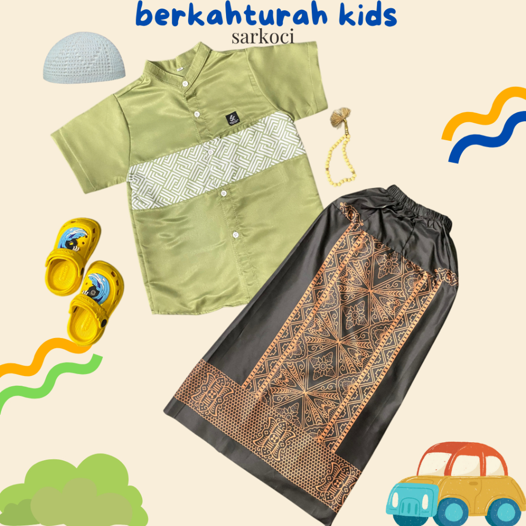 (Langsung kirim) paket lengkap SARKOCI sarung koko peci anak usia 3-11 tahun size M L XL XXL banyak variasi warna