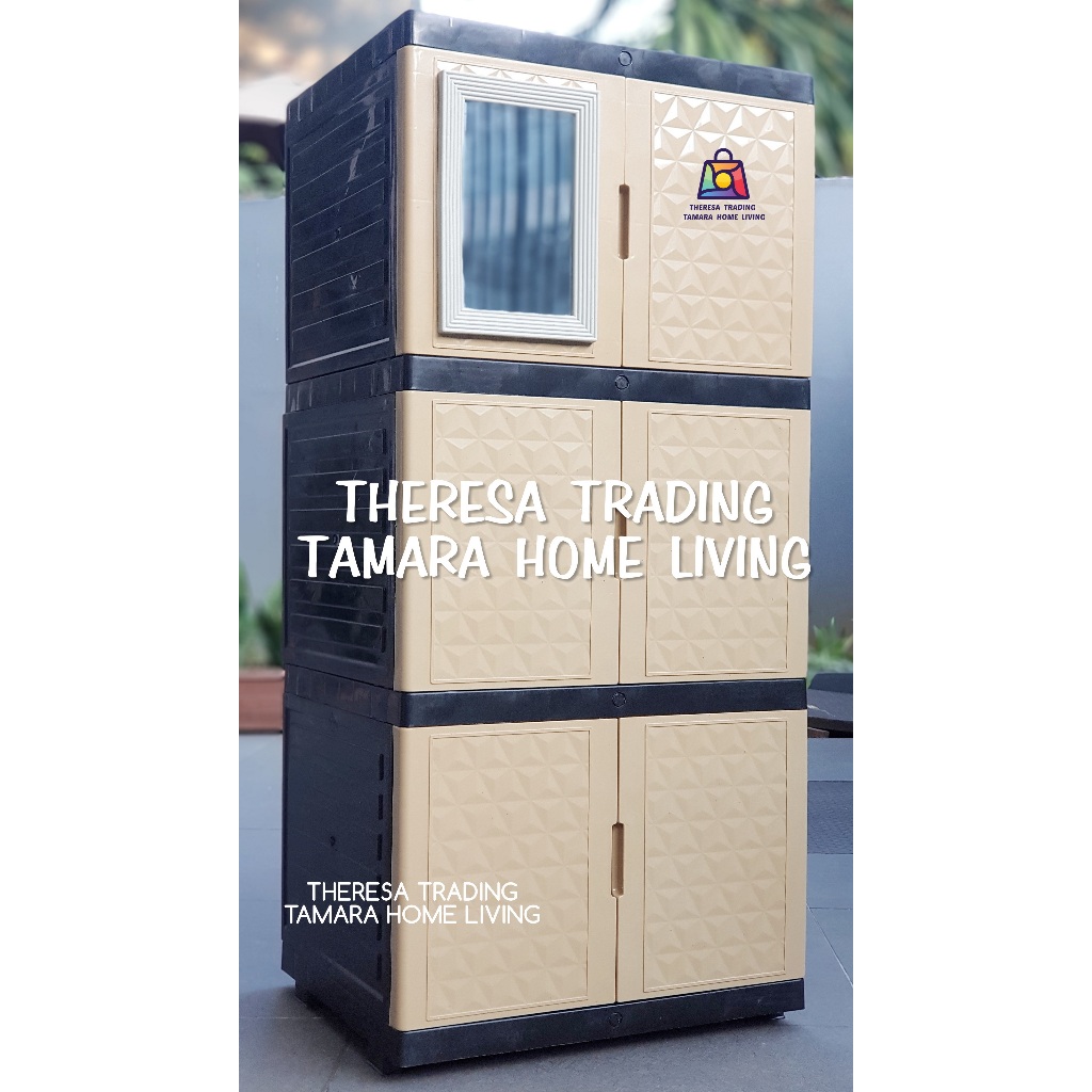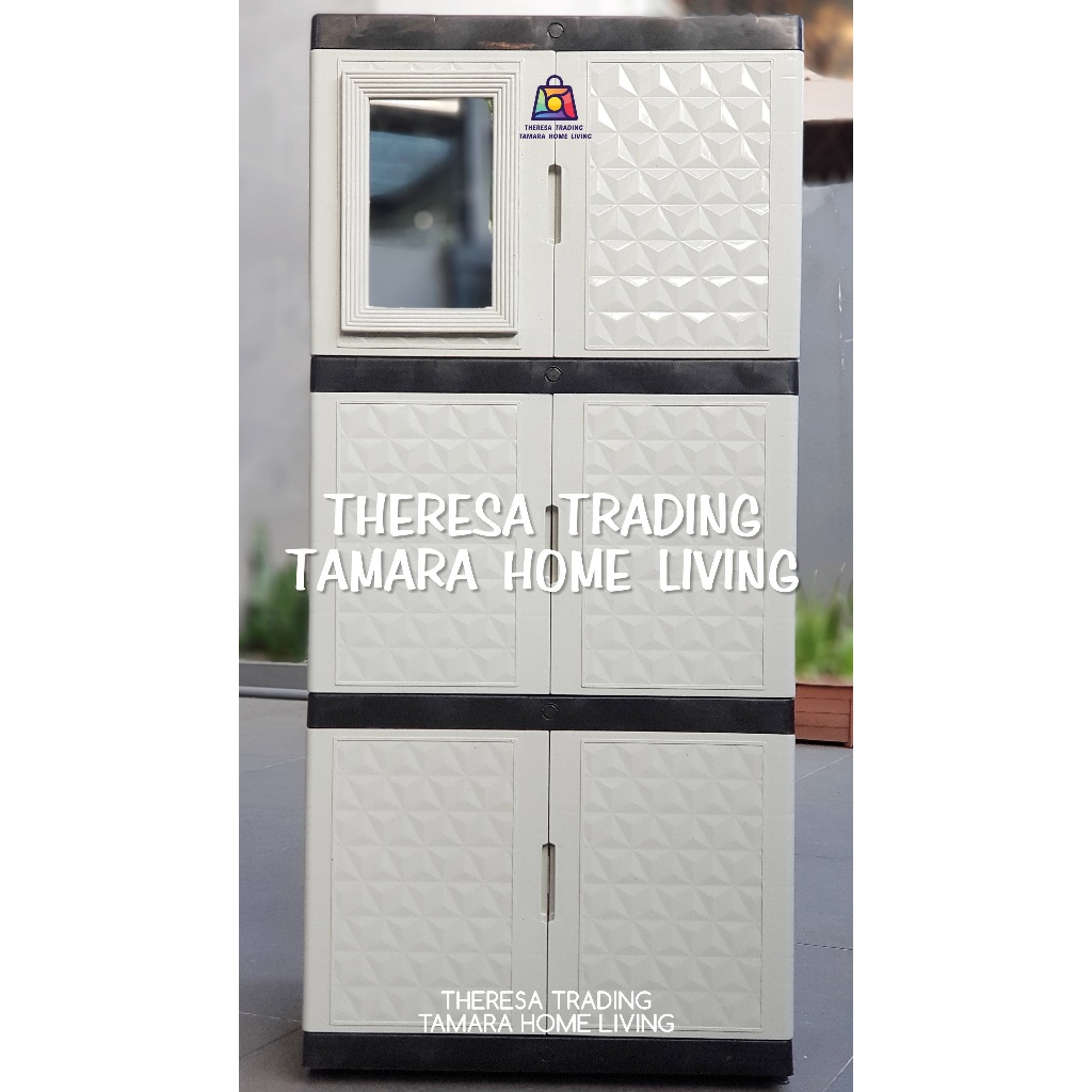 Lemari Plastik Serba Guna Diamond Kaca Cermin 3 Susun 3 Design Premium