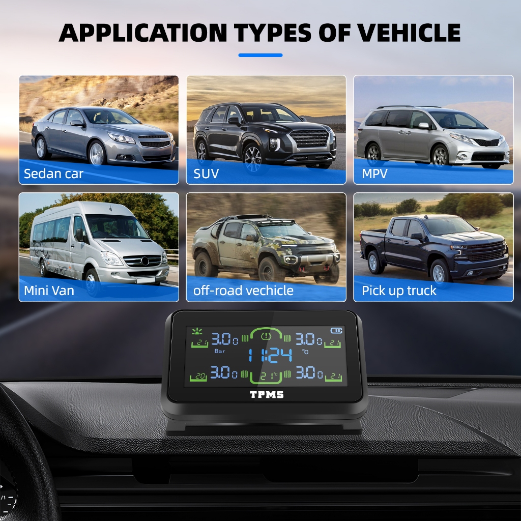 TPMS KT-T15 Monitor Tekanan Ban Mobil Sistem Pemantauan Tekanan Ban Peringatan Suhu Hemat Bahan Bakar Tenaga Surya