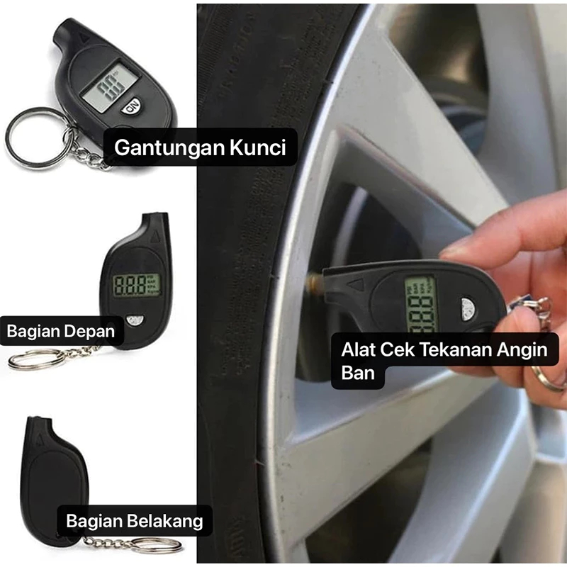 Pengukur Tekanan Ban Digital Motor Mobil Layar LCD Mini Gantungan Kunci Tire Pressure Gauge