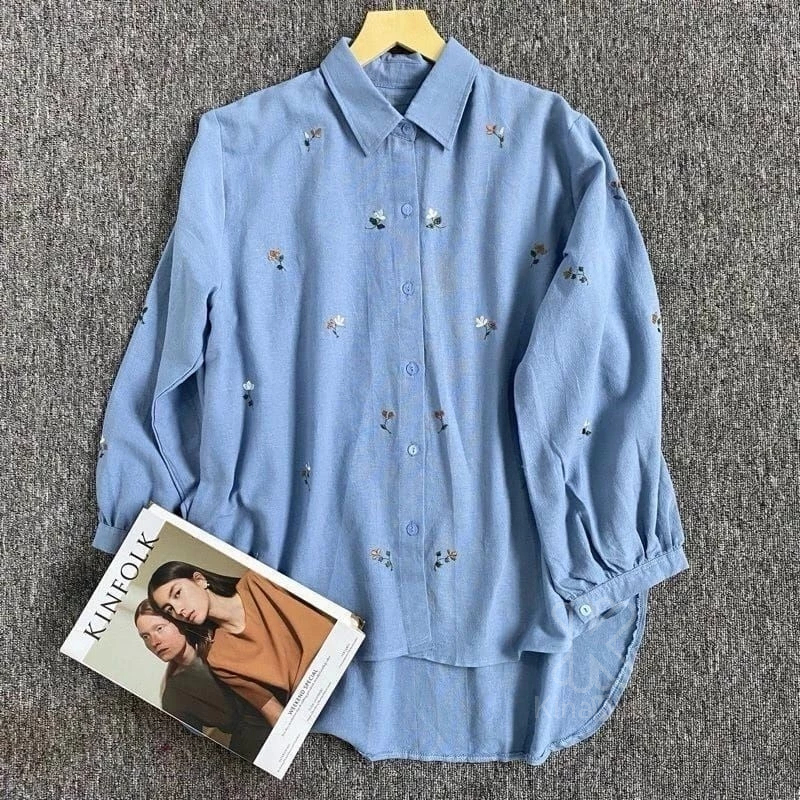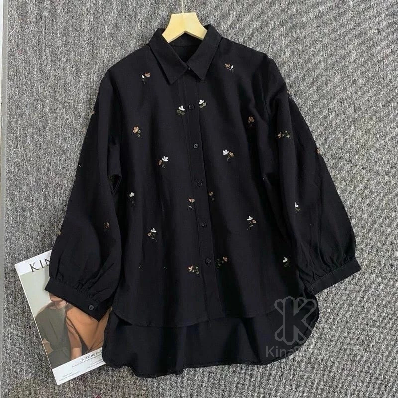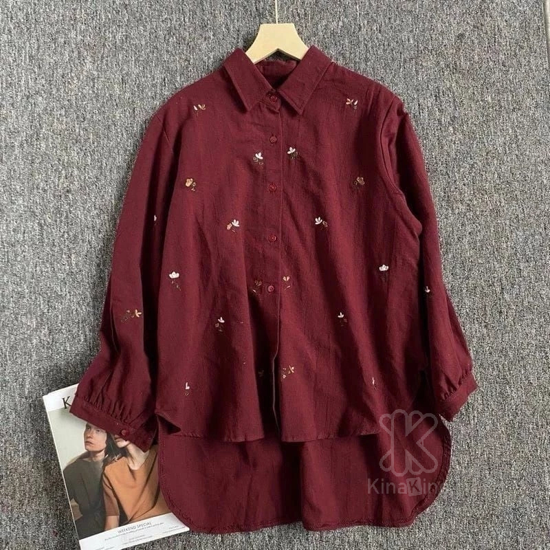 Kemeja Wanita Pololinen Bordir Bunga - Atasan Casual Lengan Panjang Adem Busui Friendly