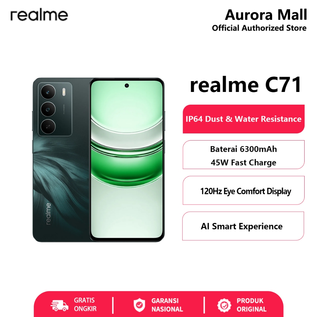 Realme C71 8/128GB 6/128GB 4/128GB NFC Penutup Layar IP64 Baterai 6300mAh Garansi Resmi