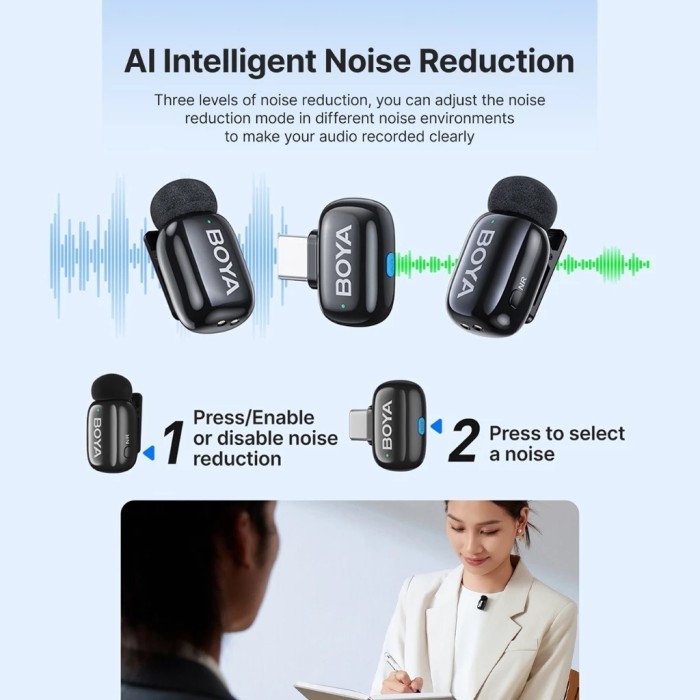 BOYA MINI Microphone dengan Fitur AI Pengubah Suara Port Lightning & USB Tipe C Kompatibel dengan Ponsel Pintar Siaran L