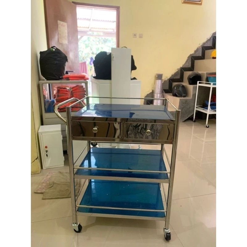 Troli Instrumen 3 Susun 1&2 Laci | Trolley Tindakan Instrument | Trolly 2 Rak Pipa Besi Bulat Hollow Stainless New | Med