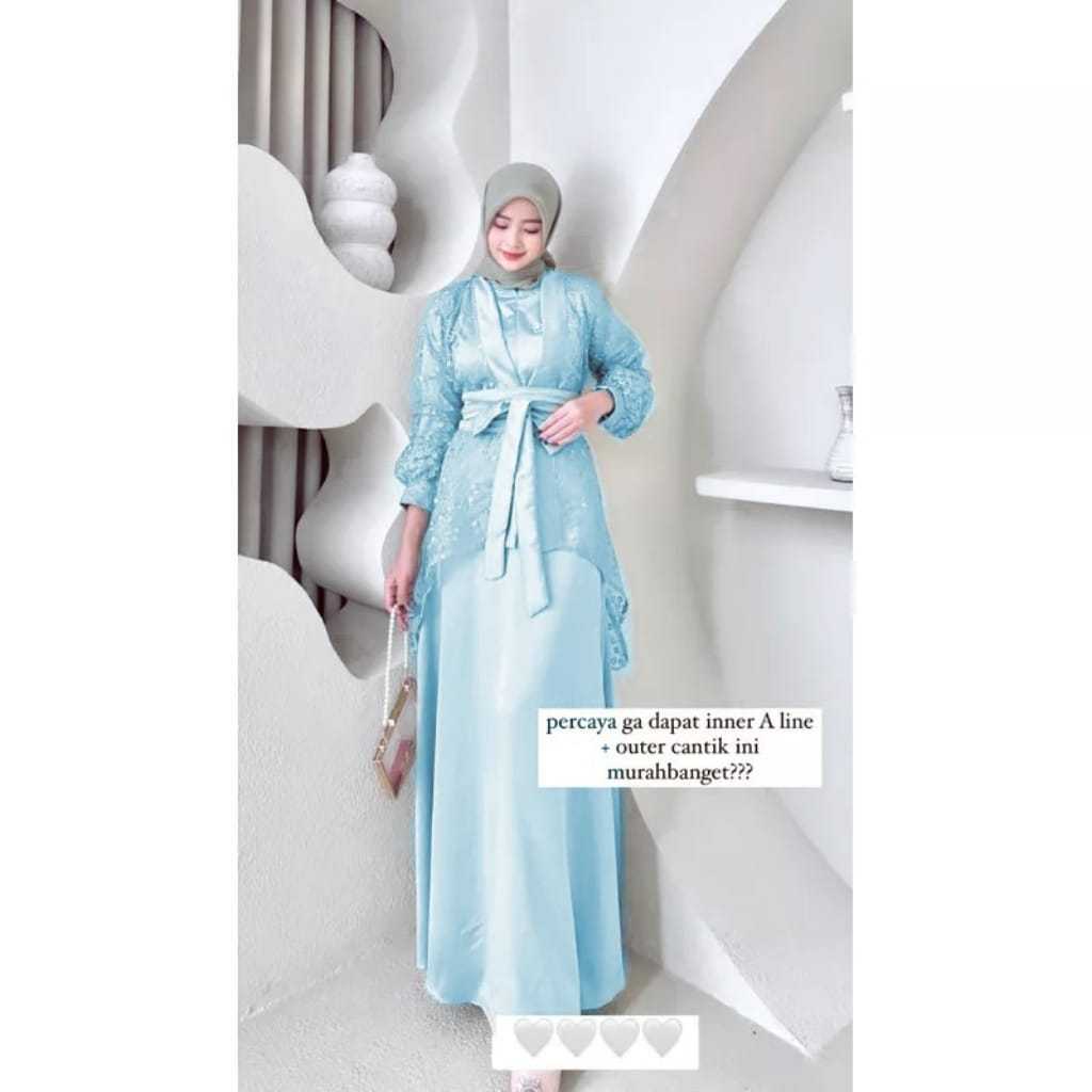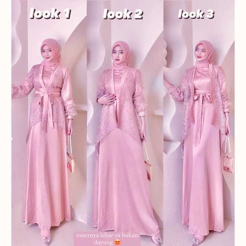 Dress Fuji 3In1 Gamis Satin Velvet Kombi Tile Mutiara Muslim Wanita Terbaru