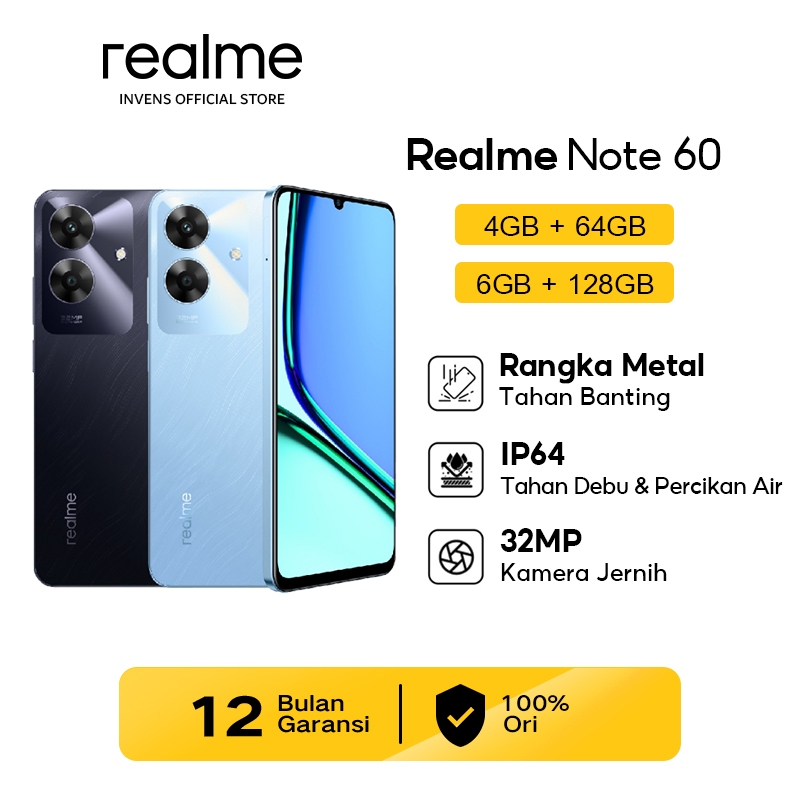Official Realme Note 70 4+64GB/4+128GB Realme Note 60 4+64GB/6+128GB 32MP Camera 48-Month Fluency IP64 Dust & Water Resistance