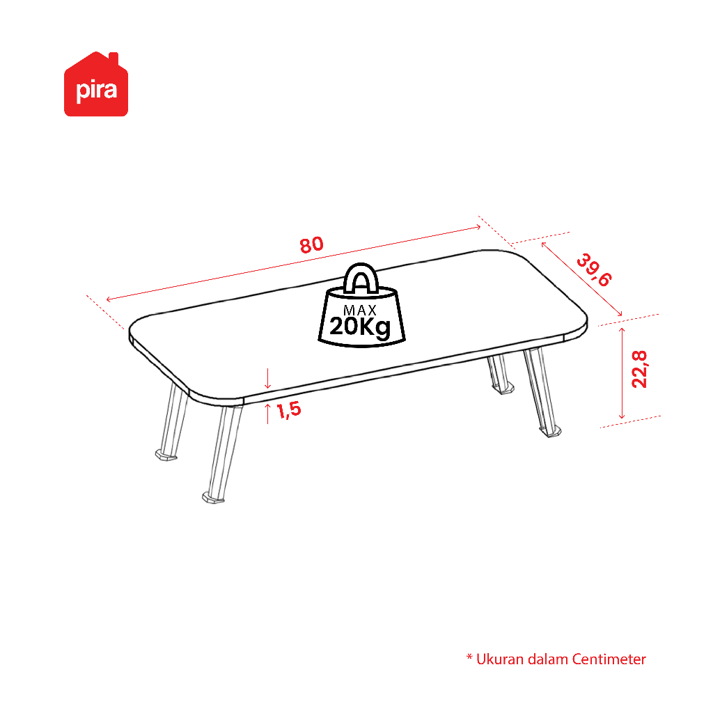Meja Belajar Lipat Lesehan Merek Pira Ox Kino Desk Serbaguna