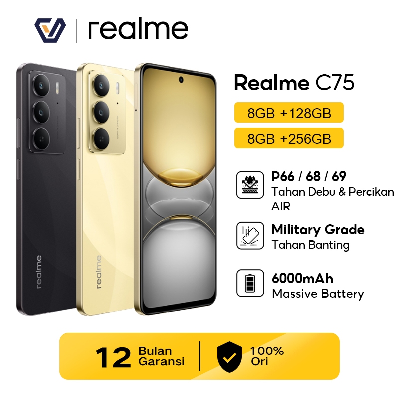 Official Realme C75 8+128GB/8+256GB - IP66/68/69 Dust & Water Resistance Military Grade Shock Resistance 6000mAh Massive Batery