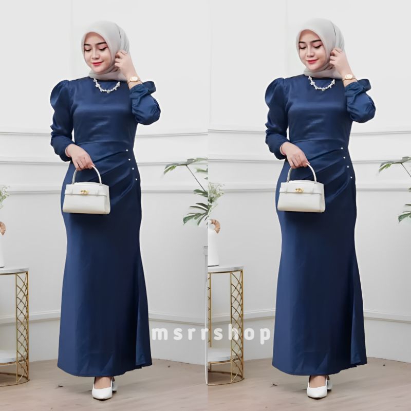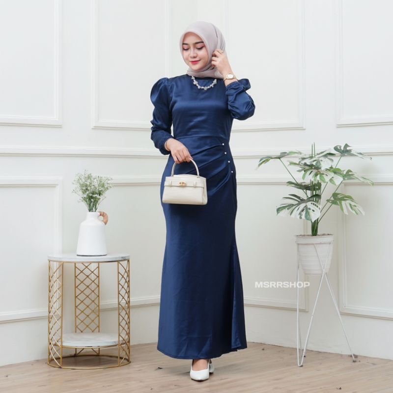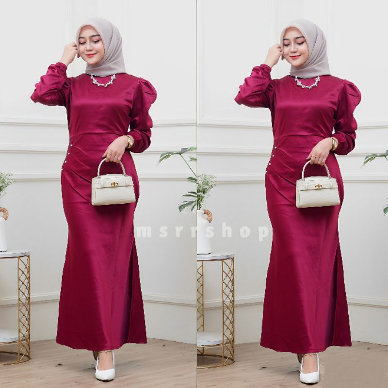 Dress Elora Satin Silk Premium Wanita Kondangan Wisuda Couple Muslimah Kekinian