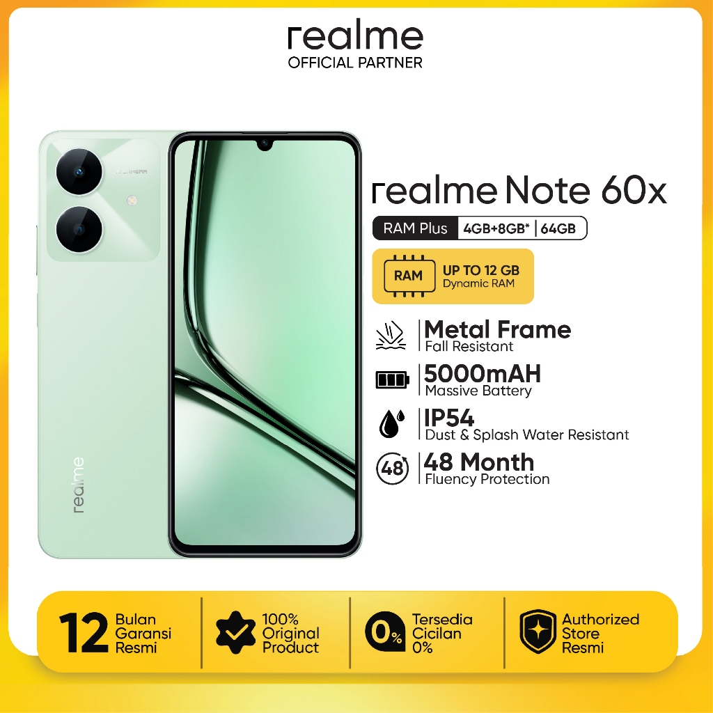 realme Note 60x 4GB+8GB64GB ArmorShell™ Protection 48-month Fluency IP54 Dust & Water Resistant