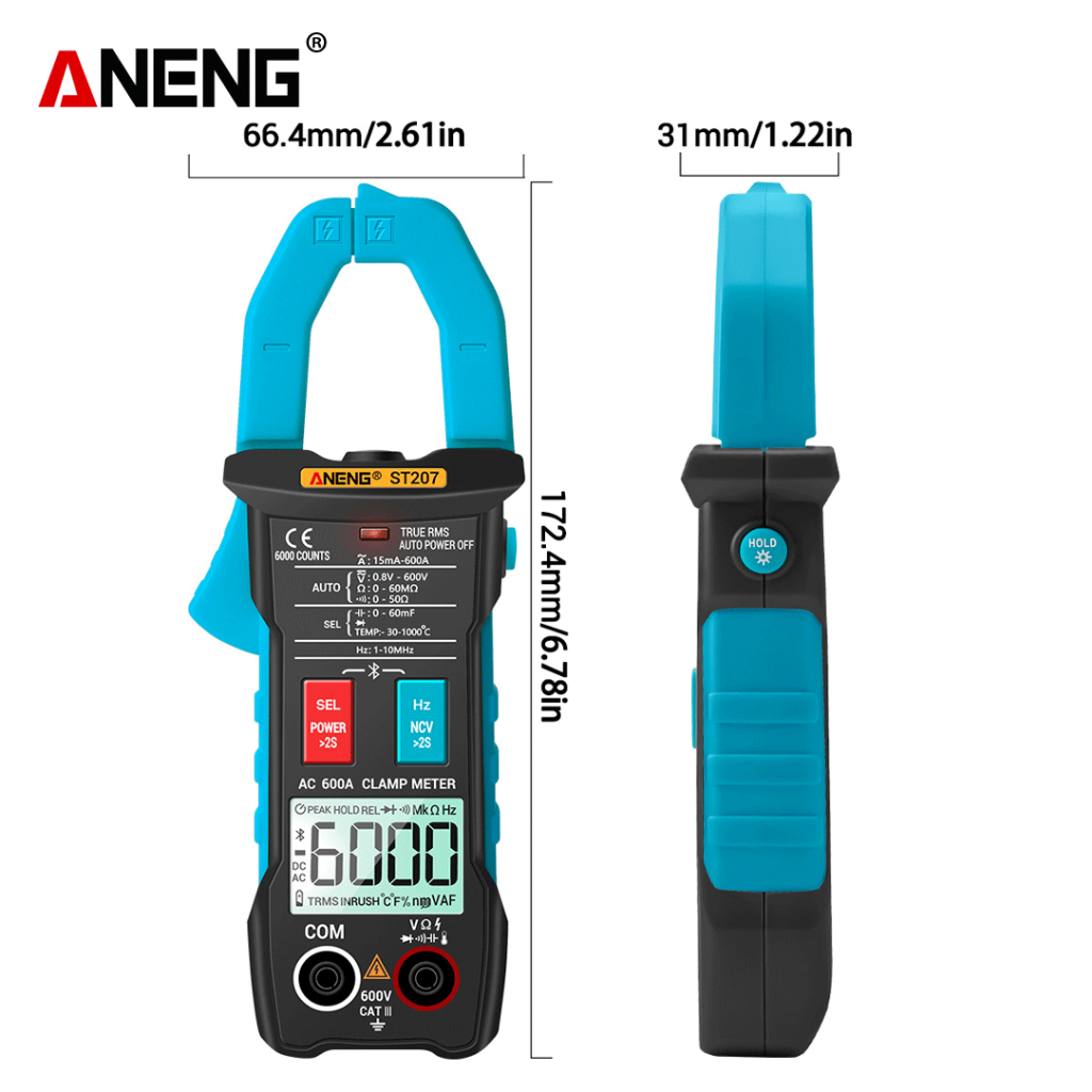 Aneng ST207 Bluetooth Clamp Meter 6000 Count True RMS Multimeter Hz Capacitance Ohm Voltage Tester
