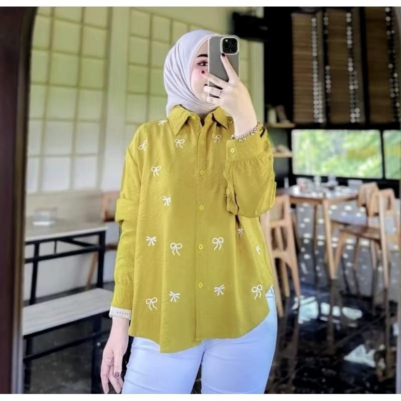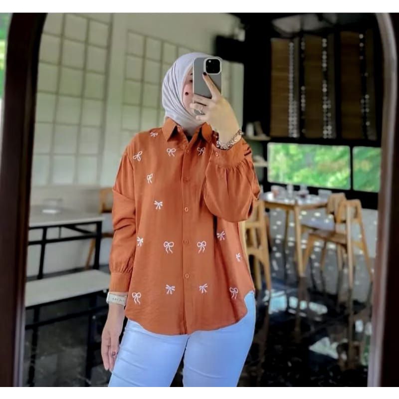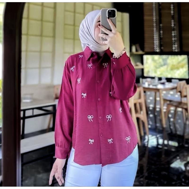 Blouse Wanita Bordir Pita/Kemeja PURE linen/Atasan Blouse Bordir Korean Style