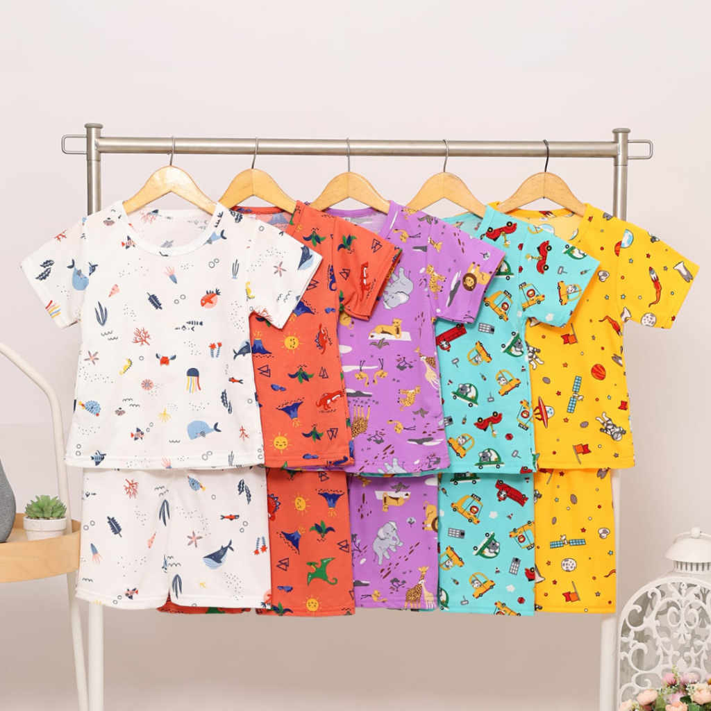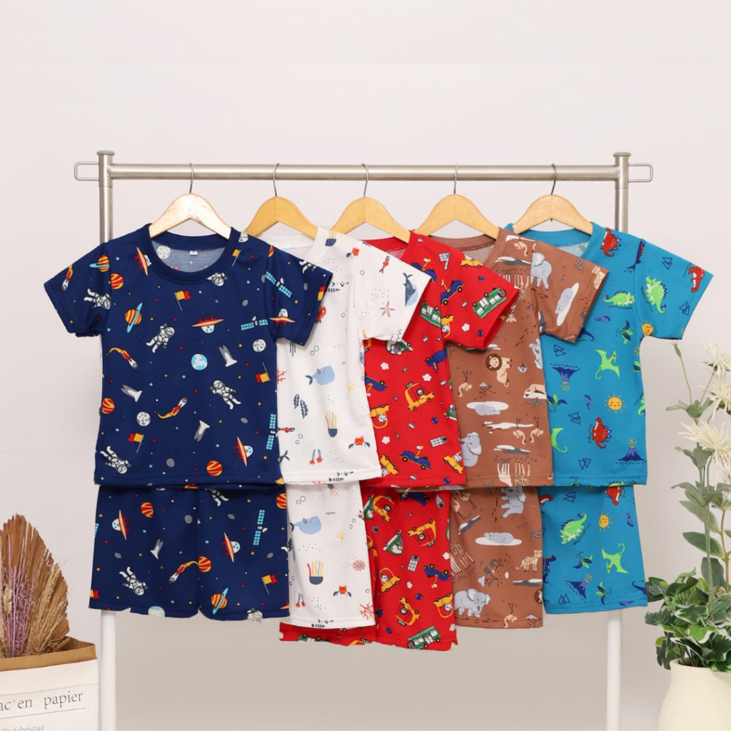 IRU KIDS - 5 PCS PAKET SETELAN ANAK PRINTING COWOK DAN CEWEK UNISEX USIA 0-6 TAHUN FREE MAINAN