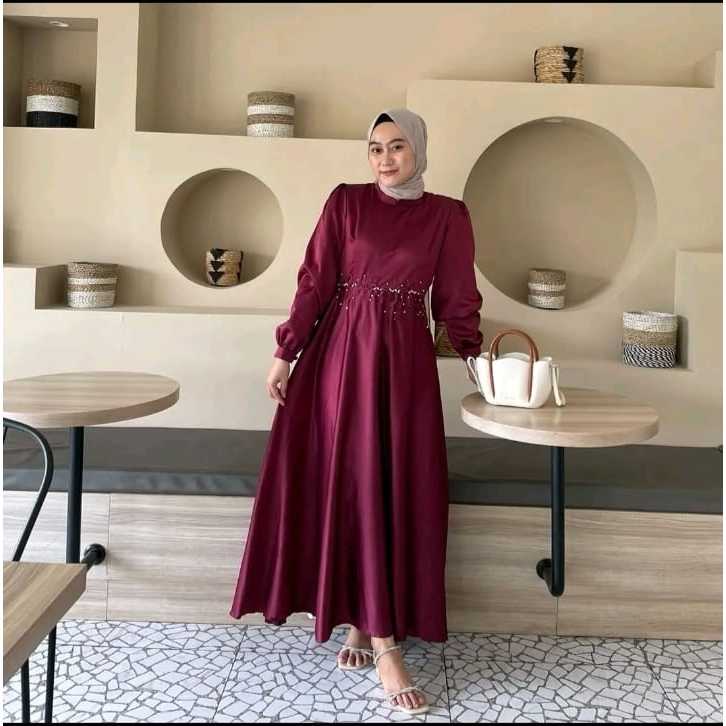 Dress Sabrina Satin Velvet Premium Gamis Kondangan Jumbo Ld 100-140Cm Pesta Muslimah