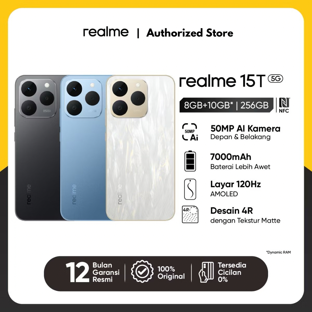 realme 15T 8GB+10GB 128GB 256GB 50 MP Front & Rear AI Camera 120 Hz AMOLED NFC GARANSI RESMI