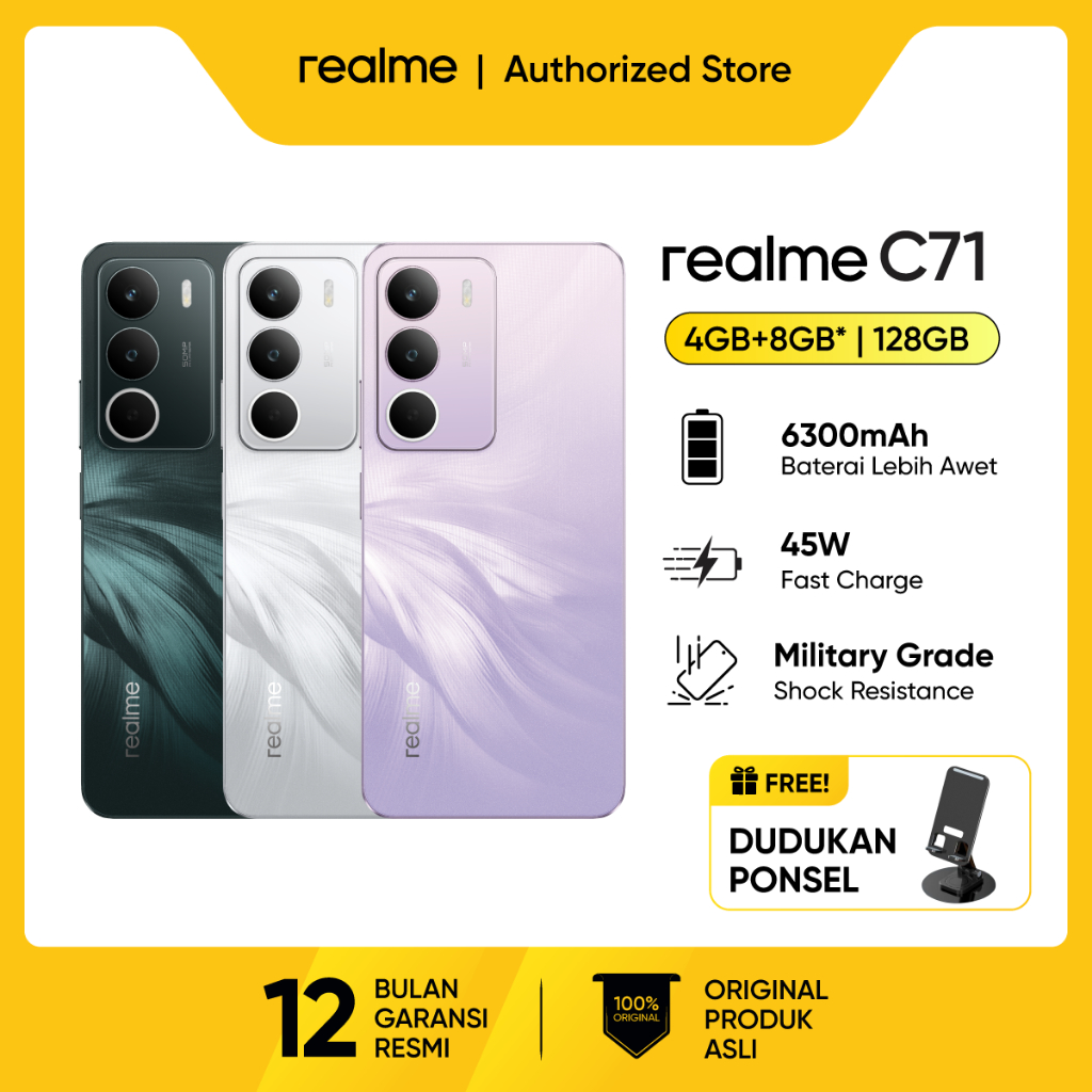 realme C71 4GB+128GB 6GB+128GB 8GB+128GB 6300 Baterai 45W Fast Charge Military Grade Shock Resistance NFC