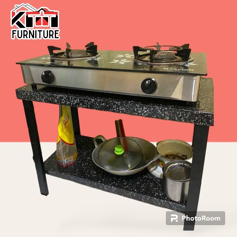 Meja Kompor Kayu Serbaguna Merek Meja Portable Laci Minimalis Modern Hitam Motif Marbel Granit