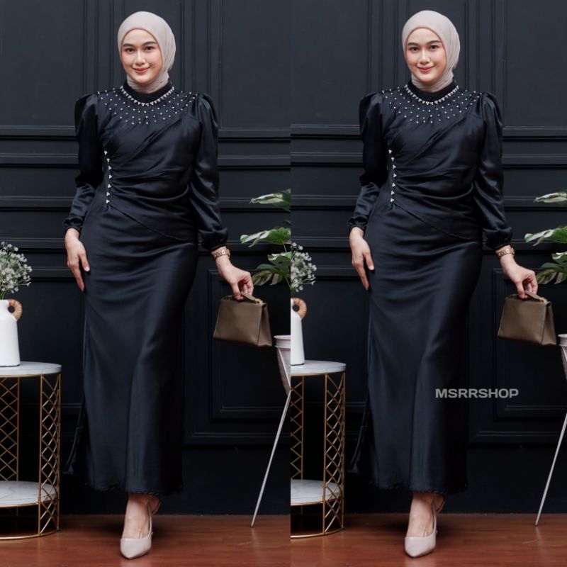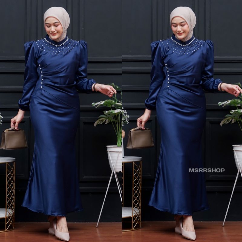 Dress Vina Satin Silk Premium Wanita Kondangan Muslim Body Fit Mermaid 2025