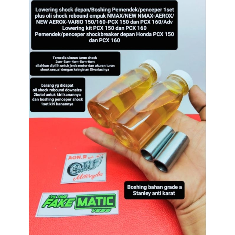 LOWERING DOWNSIZE HEMAT NMAX OLD NEW NMAX NMAX TURBO AEROX OLD NEW AEROX AEROX ALPHA VARIO BEAT PCXADV MIO XRIDE MIO M3 1set boshing+oli shock rebound aja