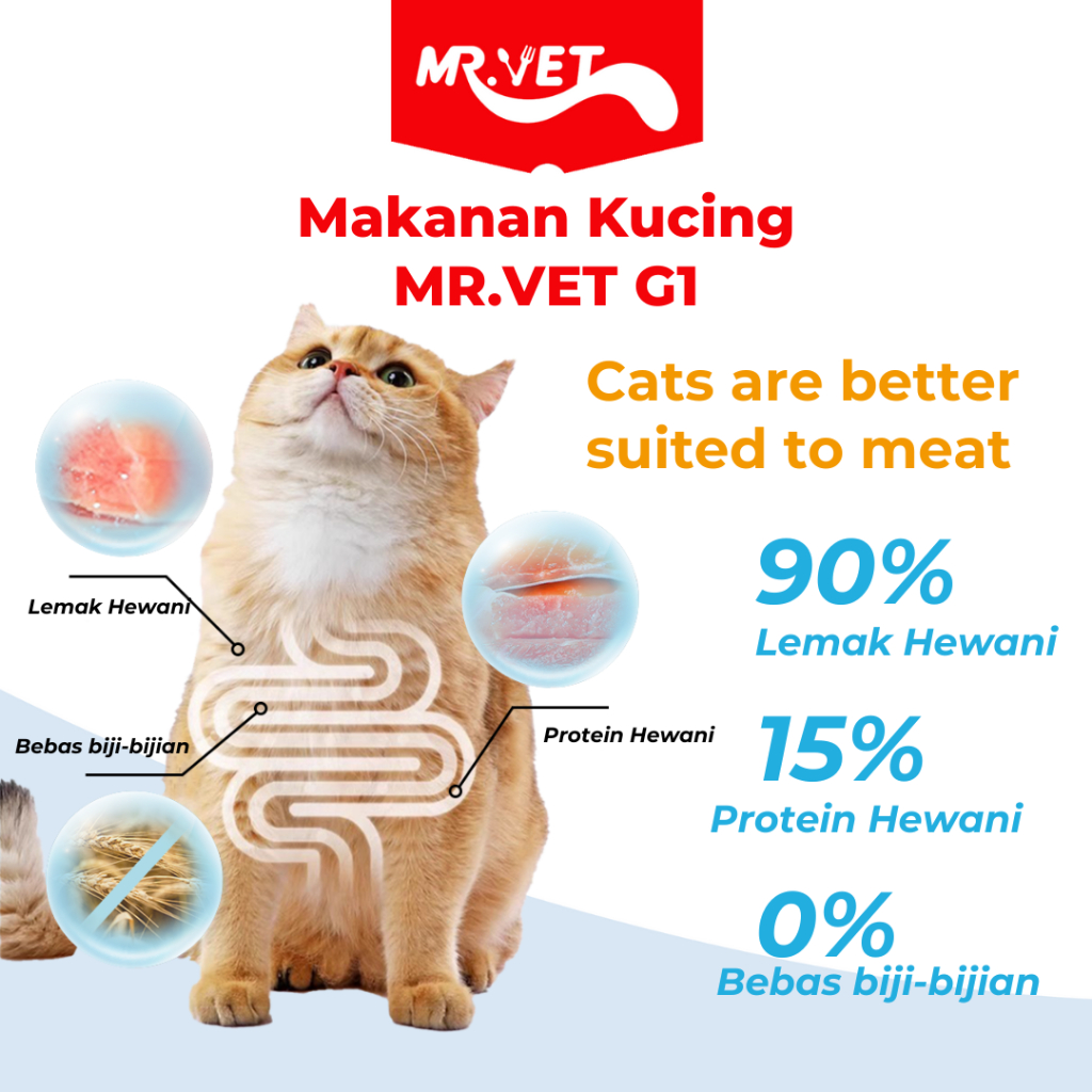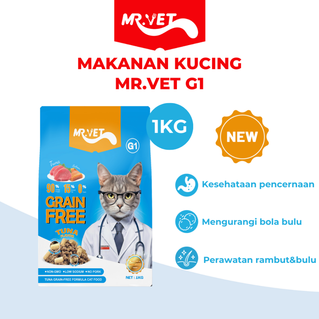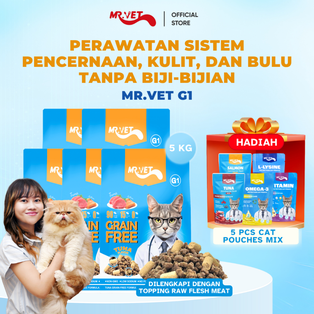 Mr.Vet G1 GRAIN FREE - Makanan Kucing 5kg untuk mendukung pencernaan dan perkembangan menyeluruh untuk kucing