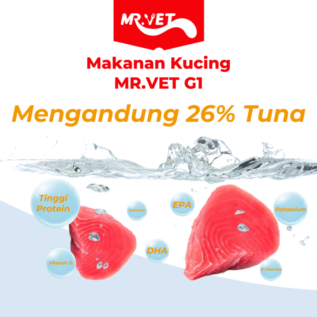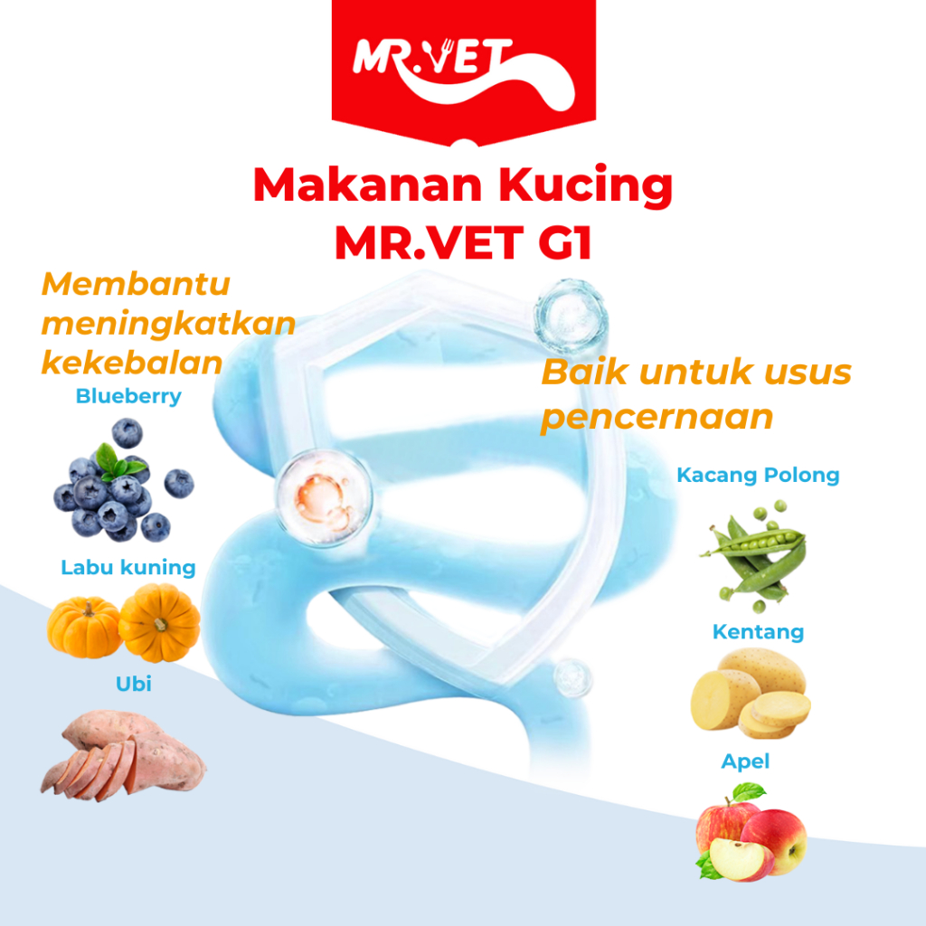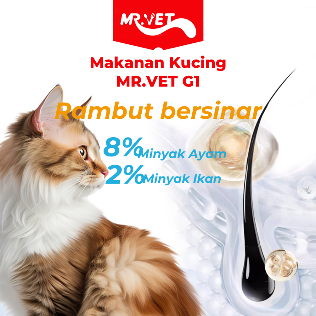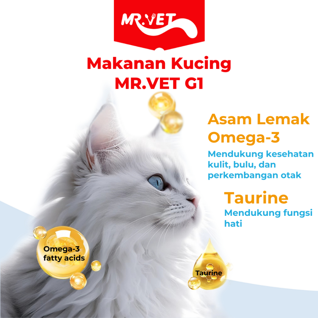 Mr.Vet G1 GRAIN FREE - Makanan Kucing 5kg untuk mendukung pencernaan dan perkembangan menyeluruh untuk kucing