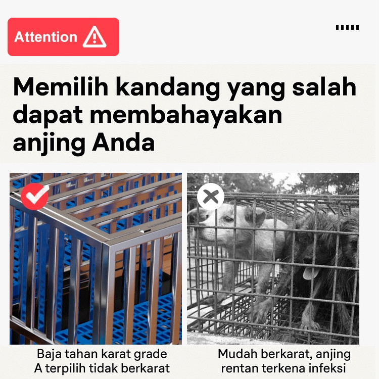 Kandang Anjing Besi Anti Karat Tabung Baja Tebal Kuat untuk Anjing Sedang dan Besar Mudah Dipindah