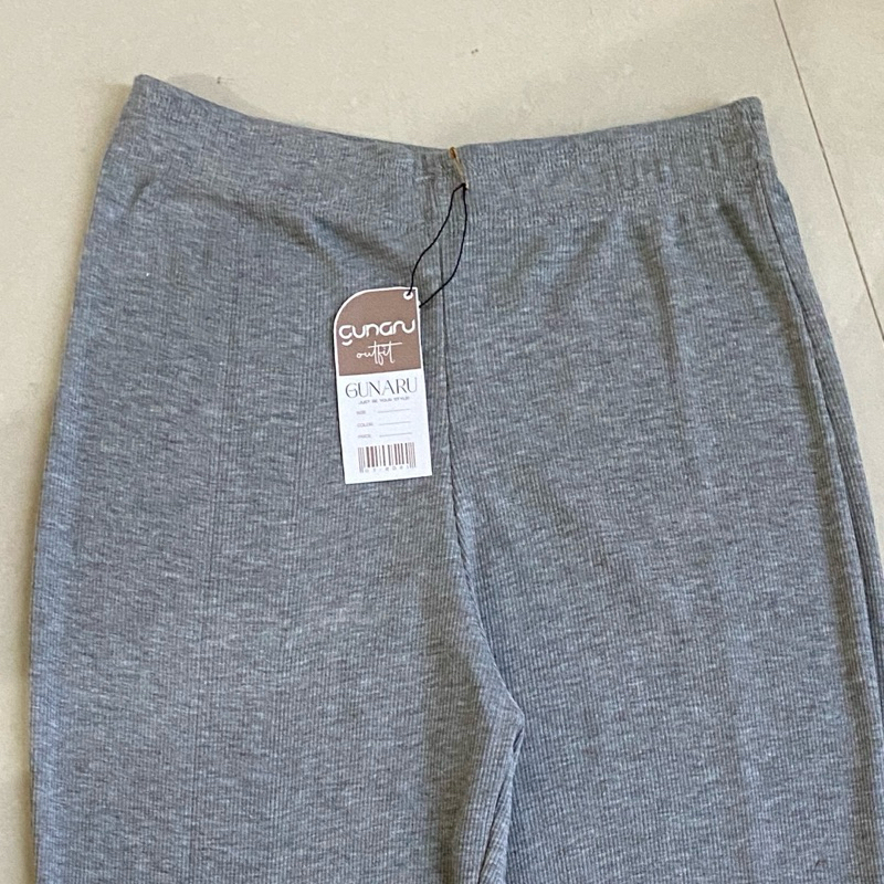 Flare Pants Wanita Highwaist Cutbray Rajut Rib Celana Panjang