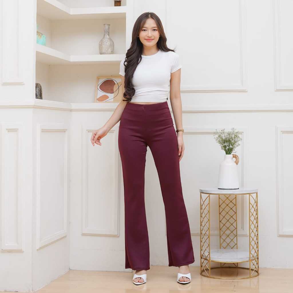 Flare Pants Wanita Highwaist Kulot Cutbray Celana Flare Basic