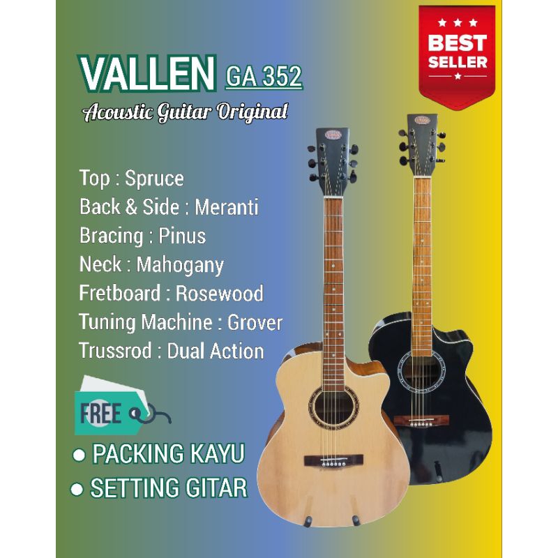 GITAR AKUSTIK VALLEN GA 352 ORIGINAL GITAR AKUSTIK ELEKTRIK T0P SPRUCE