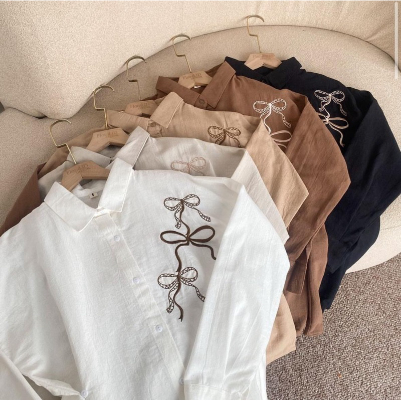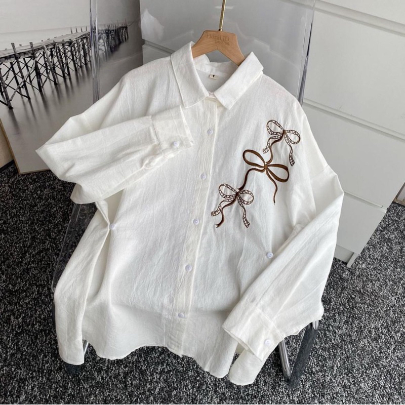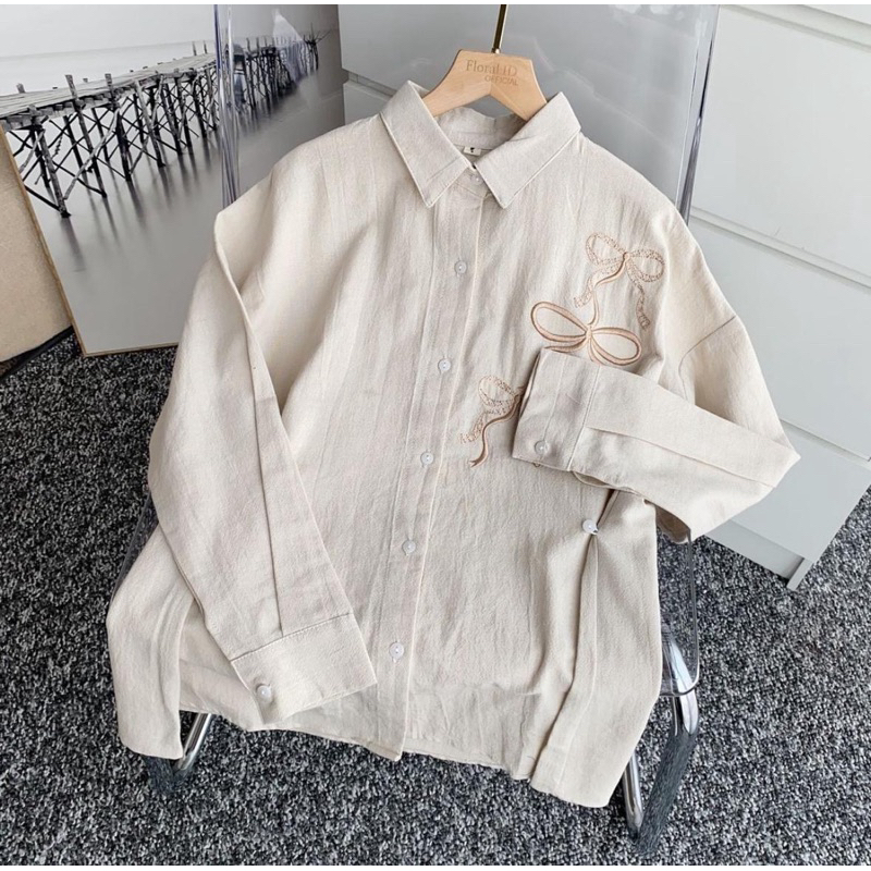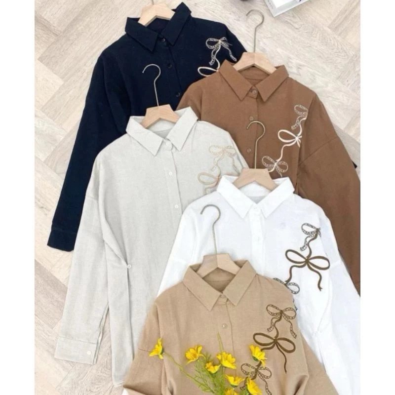 Lora Blouse Bordir Wanita Reborn Shirt Atasan Kemeja Wanita Linen Angel Premium