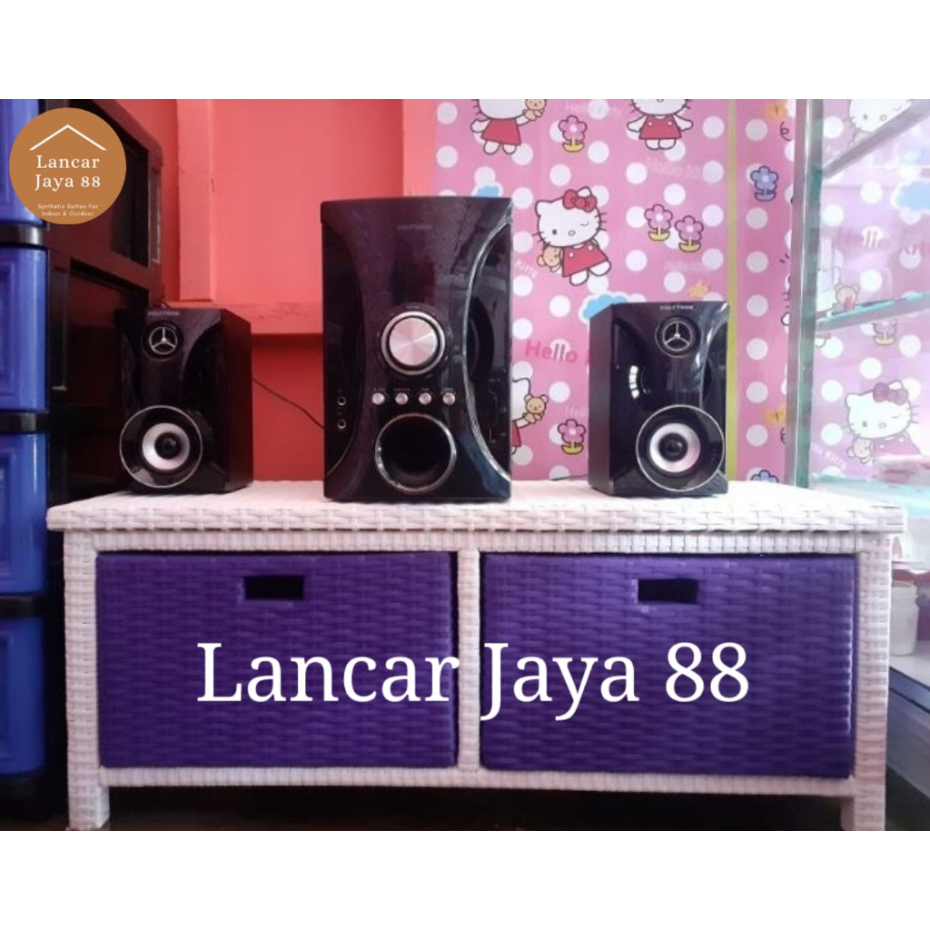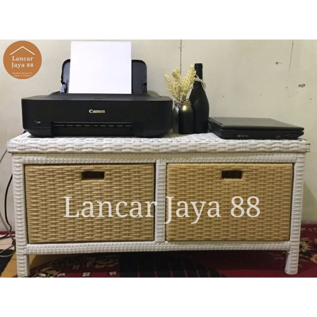 Meja Tv Minimalis Rotan Sintetis Lemari 2 Laci