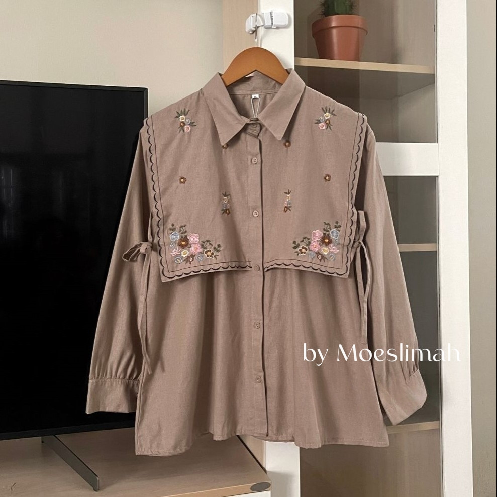 Narika Shirt - Kemeja Bordir Bahan Linen - Ukuran S M L XL XXL XXXL 5L - Kemeja Jumbo - Atasan Wanita Jumbo - Kemeja Wanita Lengan Panjang