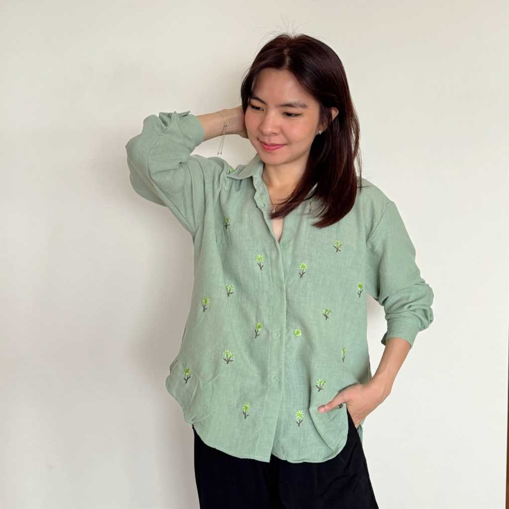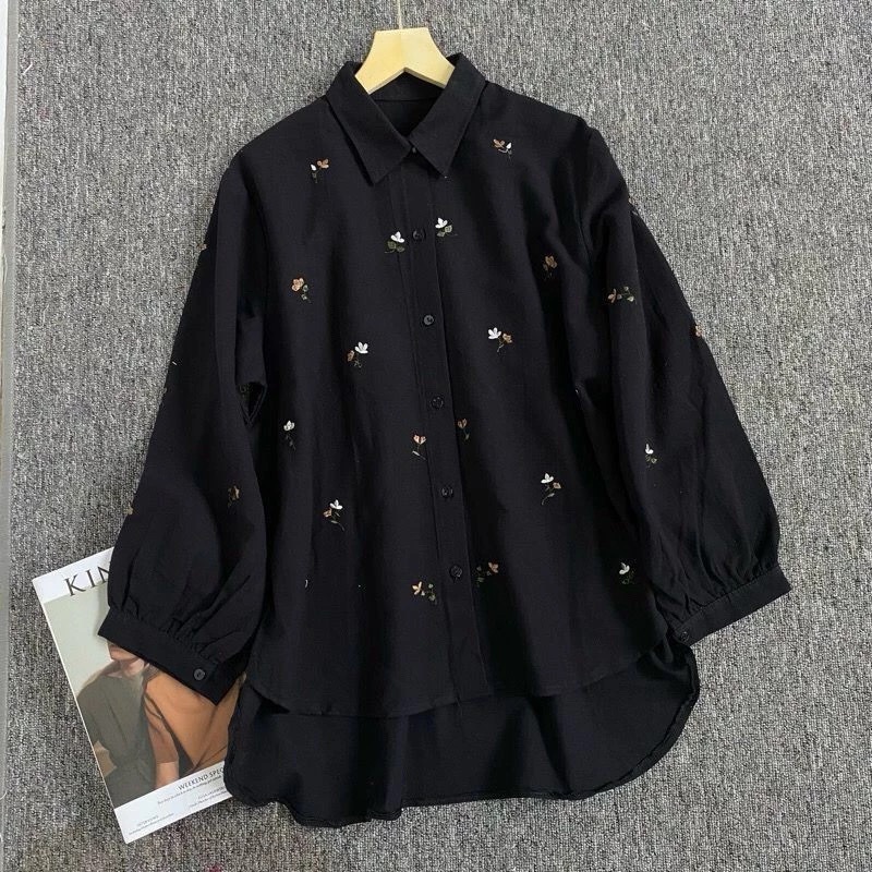 Kemeja Basic Blouse Atasan Kemeja Oversize Wanita Muslim Matt Linen OOTD Korean Style