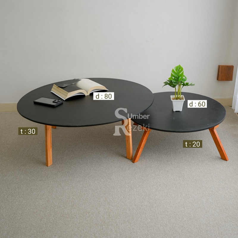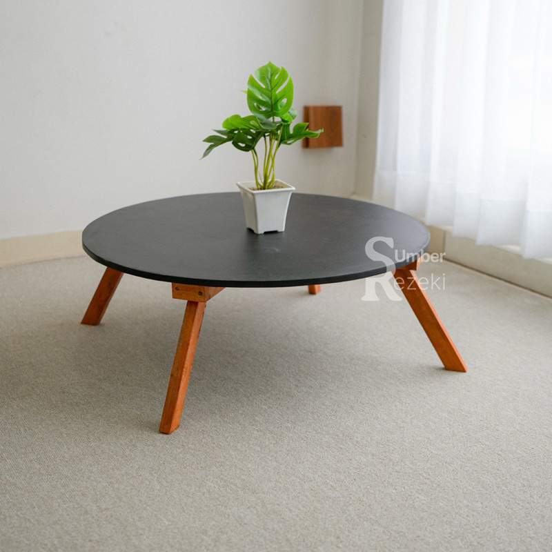Minimalis Meja Ruang Tamu Belajar Lipat Lesehan Bulat Aesthetic Kayu Multifungsi