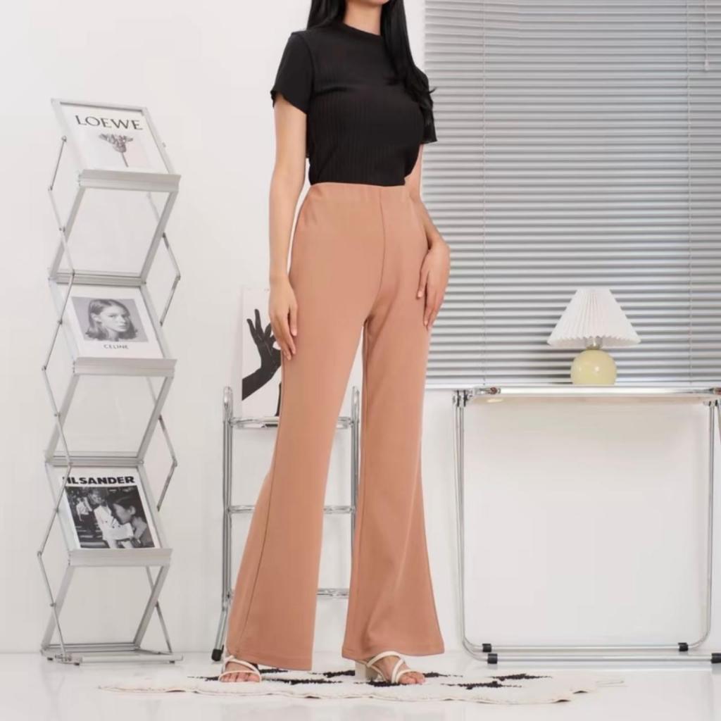 Flare Pants Wanita Highwaist Cutbray Rib Knit Premium Melar Stretch