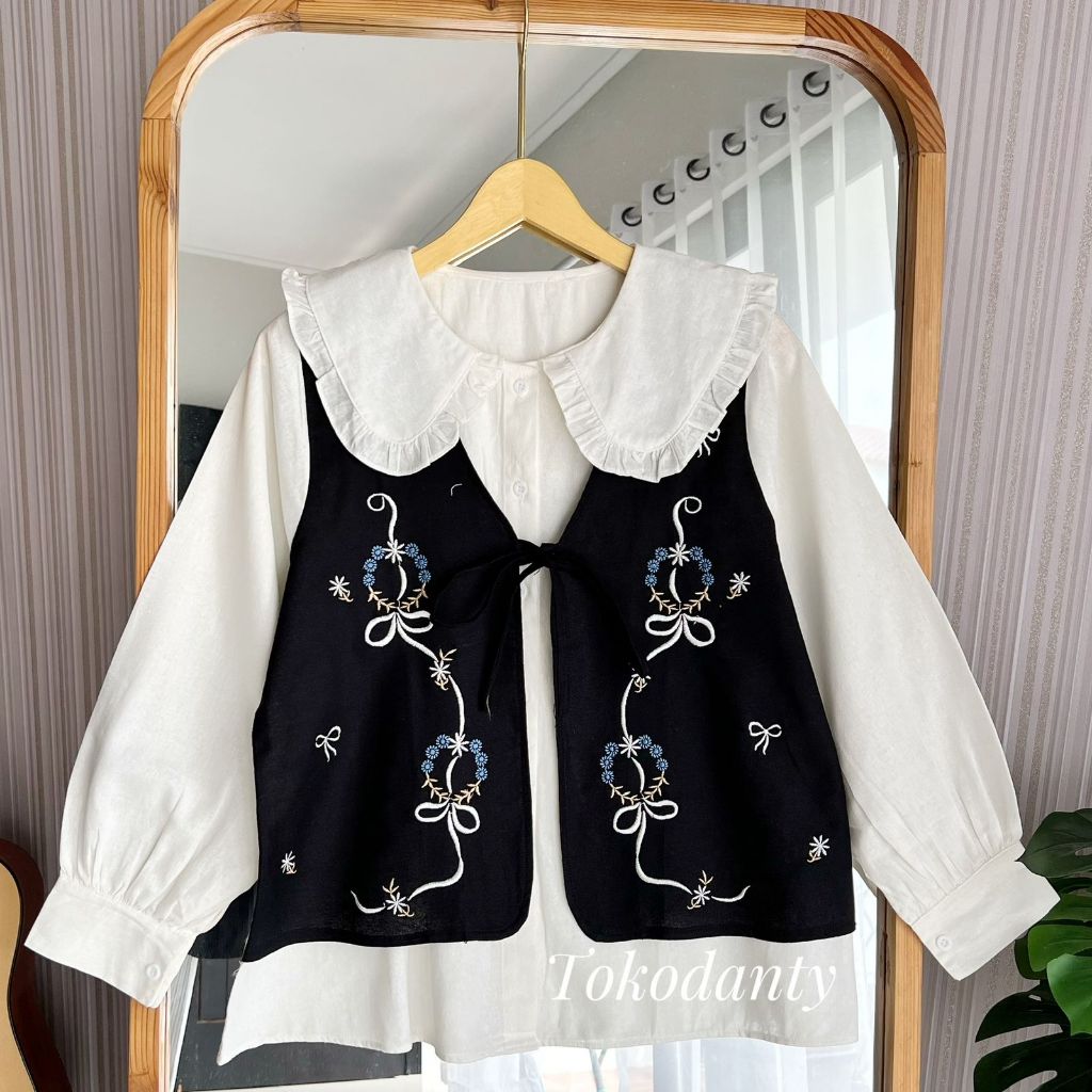 Kamari shirt Atasan Kemeja Wanita Lengan Panjang Katun Linen Bordir