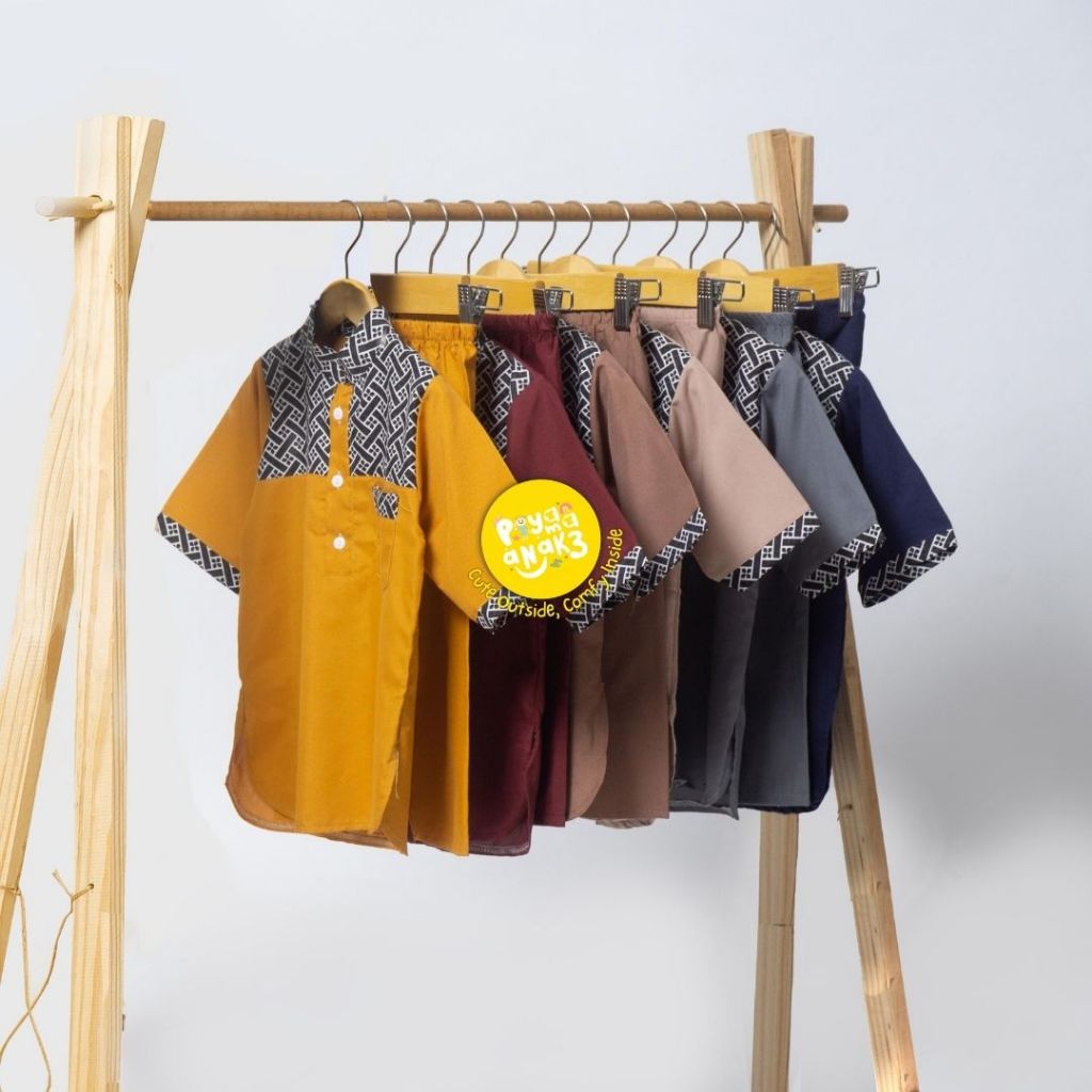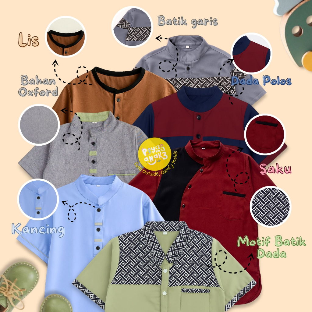 PAKET 3 SETELAN KOKO CAMPUR KURTA ANAK BATIK DADA KANCING LIS GARIS 1-10 TAHUN 60RIBU DAPAT 3 SET
