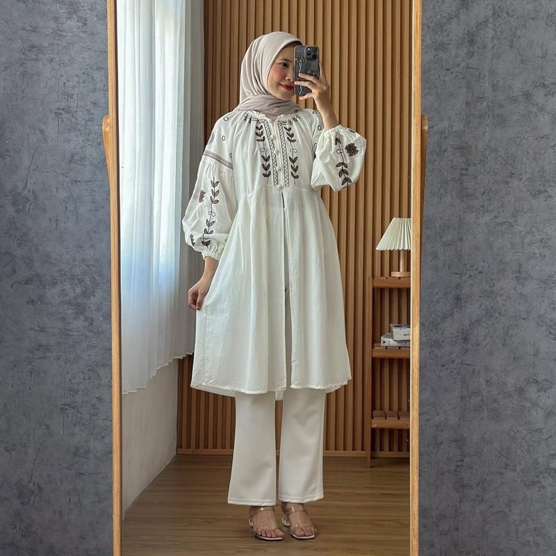 Fitri Top Tunik Linen Bordir Atasan Katun Style Korea Blouse wanita Premium