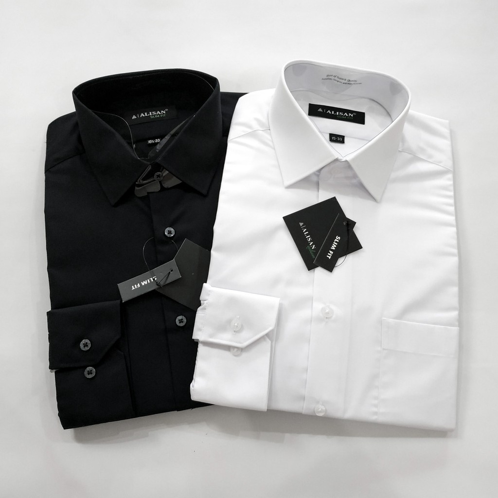 Kemeja ALISAN Polos SLIM Fit Lengan PANJANG ( HITAM , PUTIH )
