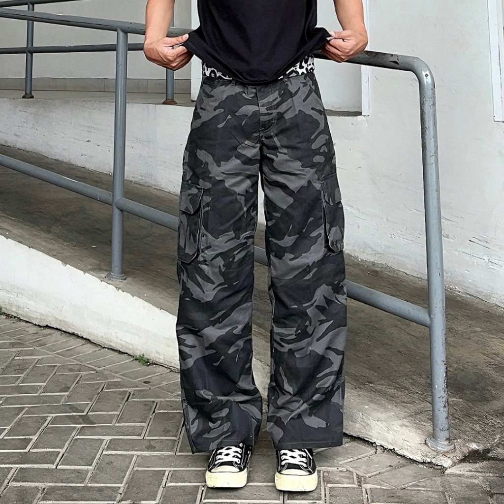 Celana Loreng Panjang Pria Cargo Camo Gombrong Skena / Cargo Pants Loreng / Carpenter Pants Loreng
